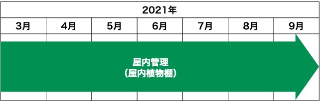 21年3 ~ 9月の間、室内で LED を当てて生育しました。